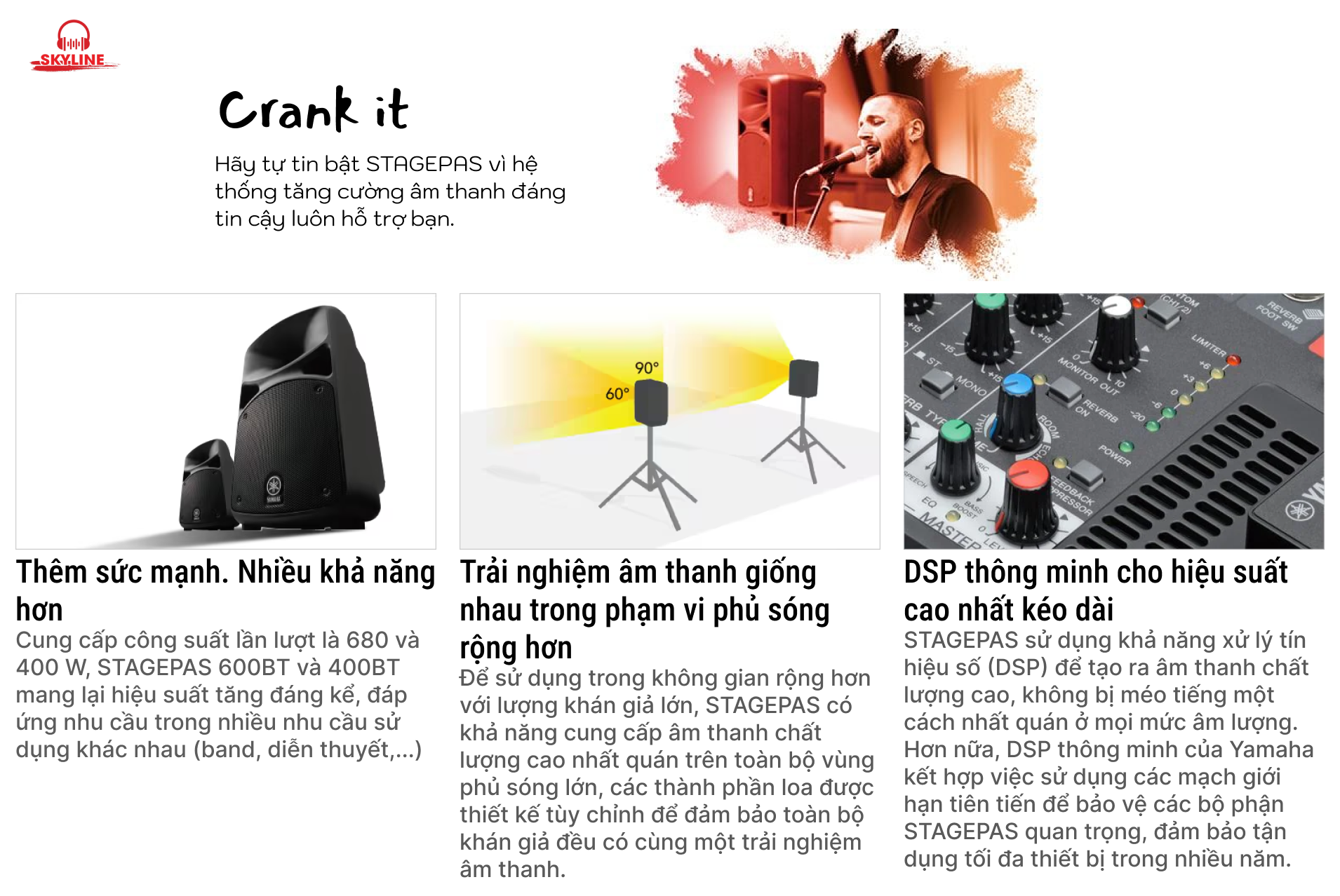 Hệ Thống Âm Thanh Di Động Yamaha STAGEPAS 600BT được nhập khẩu, phân phối và bảo hành chính hãng bởi CÔNG TY TNHH THE SKYLINE. Để lựa chọn và mua sản phẩm phù hợp cùng với mức giá tốt nhất với nhiều ưu đãi, bạn có thể đặt hàng online dễ dàng hoặc đến trải nghiệm tại hệ thống cửa hàng, đại lý của SKYLINE AUDIO.