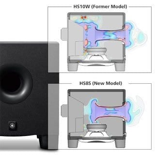 Thiết kế cổng loa có thể ảnh hưởng đến sự rõ ràng của âm thanh tổng thể. Thường một cơn lốc tại hai đầu của cổng có thể tạo ra rung động không khí bên trong của cổng, gây ra tiếng ồn không mong muốn. Bằng cách áp dụng một công nghệ giảm tiếng ồn tiên tiến mà kết hợp với phân tích sâu của một đại diện trực quan của âm thanh, các kỹ sư của Yamaha có thể kiểm soát và giảm độ xoáy. Thông qua phân tích chuyên sâu này, chúng tôi đã đến được các thiết kế cổng lý tưởng, kết quả là giảm tiếng ồn âm thanh lên đến 6dB. Việc sử dụng các công nghệ mới nhất này cho phép HS series Studio monitor đáp ứng nhu cầu của môi trường sản xuất chuyên nghiệp nghiêm ngặt hơn.