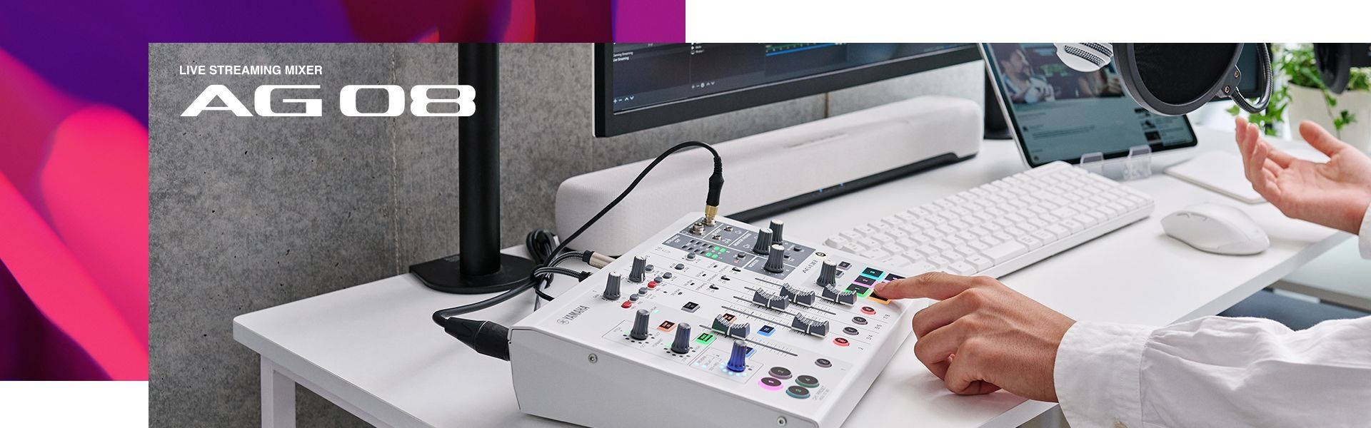 Là mẫu "flagship" thuộc dòng sản phẩm AG thế hệ thứ hai của Yamaha, Mixer Livestream Yamaha AG08 - Bàn trộn 8 kênh Yamaha AG 08 kết hợp tất cả các chức năng thiết yếu của các sản phẩm đời trước với một loạt tính năng mới thiết thực nhằm mang tới một trạm phát trực tiếp tất cả trong một chuyên nghiệp. Nhờ tích hợp các tùy chọn định tuyến I/O và USB linh hoạt hơn, cùng công tắc chân với nhiều tính năng mở rộng, cũng như bổ sung thêm các hiệu ứng DSP và cải thiện nội mạch cho chất lượng âm thanh hàng đầu trong phân khúc, AG08 phù hợp để hỗ trợ hàng loạt các ứng dụng phát trực tiếp khác nhau, cũng như tạo nội dung âm thanh ngoại tuyến. Từ podcast, chơi game, ASMR, livestream, hay biểu diễn hát/nhạc cụ, cho tới đa dạng ứng dụng cho từng cá nhân, thậm chí đạt tới quy mô của một chương trình ca nhạc kịch hoàn chỉnh, tính năng kết nối thực, thời gian thực của AG08 sẽ khiến khán giả của bạn muốn được trải nghiệm nhiều hơn nữa.